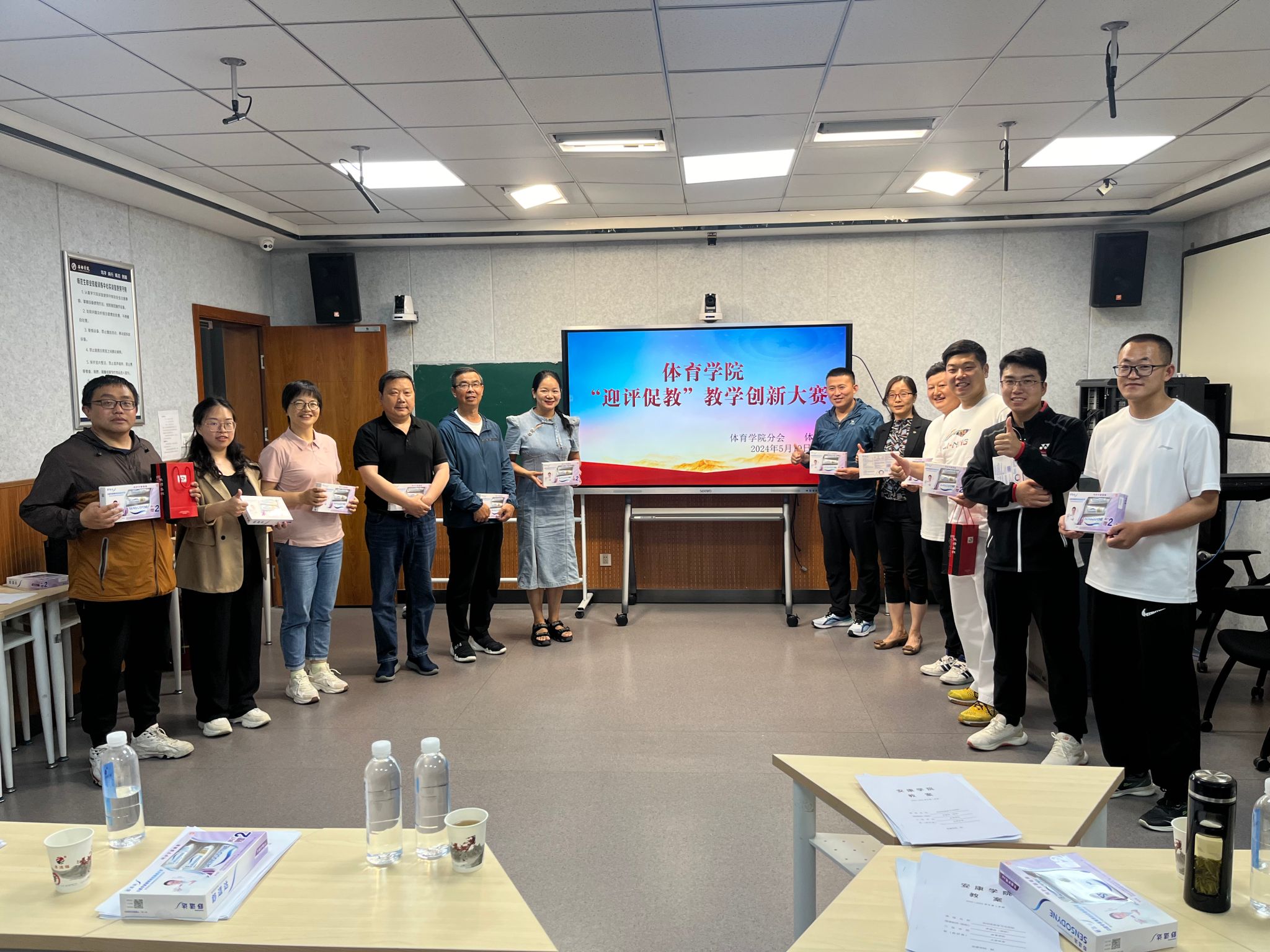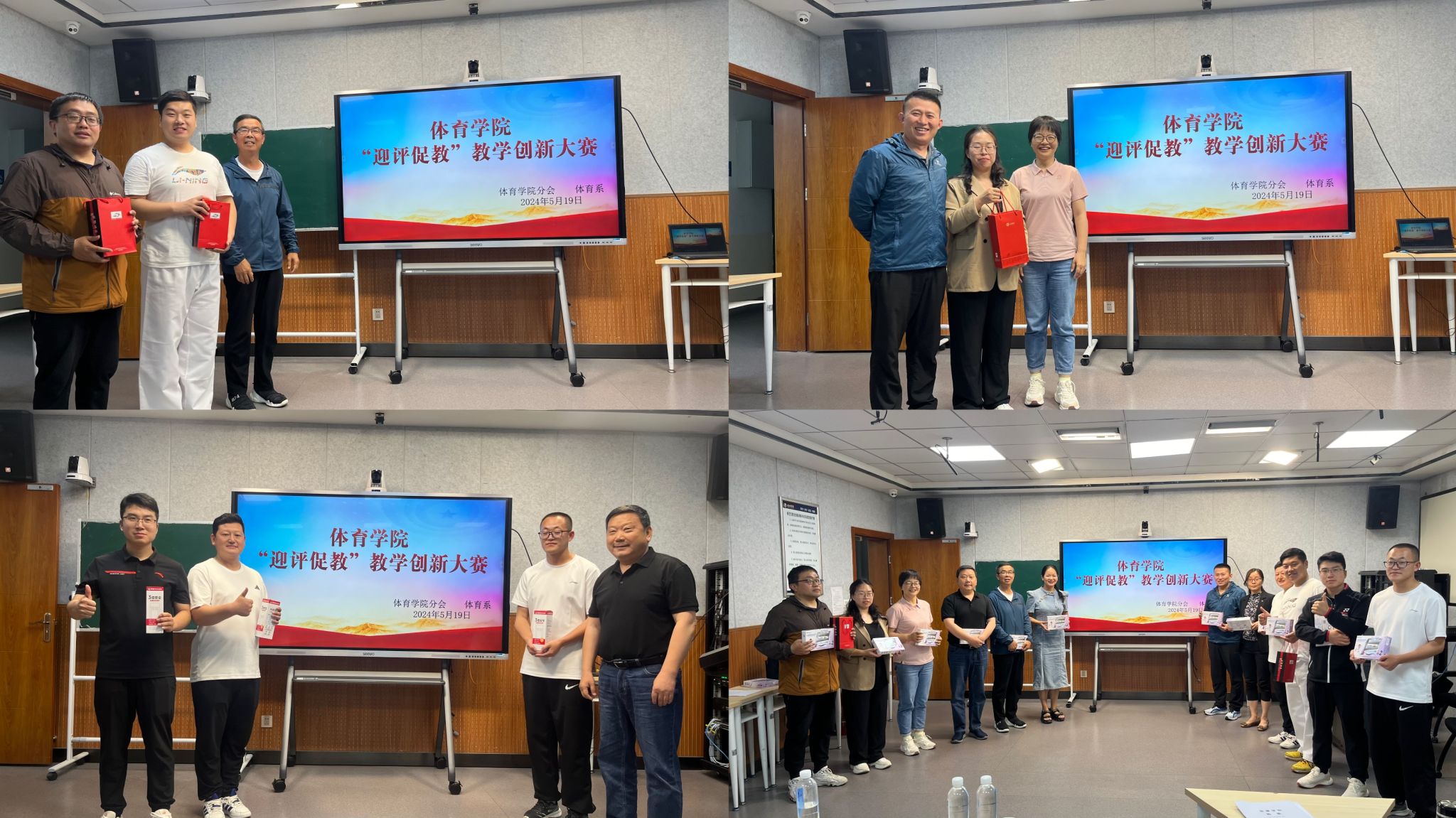 5月19日,由体育系主办、工会Beat365官方网站分会协办的Beat365官方网站“迎评促教”教学创新大赛在4201教室举行。Beat365官方网站党总支副书记郭西魁、Beat365官方网站副院长李靖、Beat365官方网站分会主席马玉琴出席本次大赛,大赛由体育系主任廖建发主持。