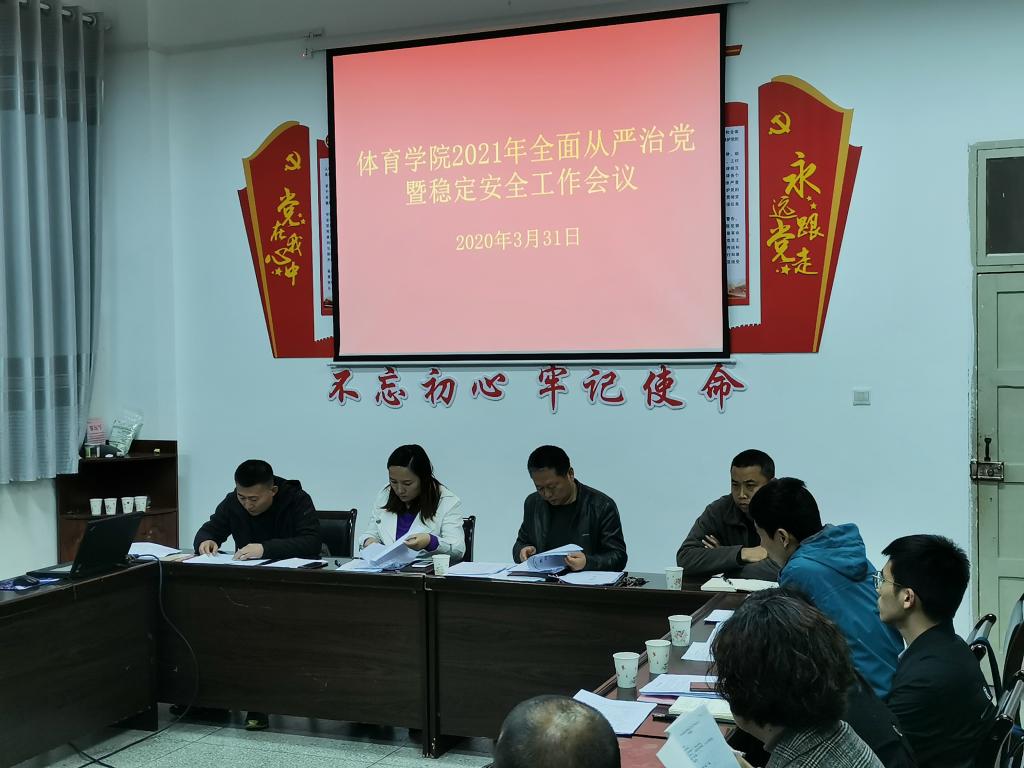 3月31日下午,体育学院在体育馆一楼会议室召开2021年全面从严治党暨稳定安全工作会议。Beat365官方网站全体教职工参加会议,会议由党总支书记高立平主持。