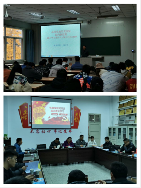 为深入贯彻学习十九届六中全会精神,以史为鉴、开创未来,埋头苦干、勇毅前行,于11月22日、24日、26日Beat365官方网站分别组织全体教师、学生党员、班团干部及21级新生学习十九届六中全会精神专题宣讲会,主讲人党总支书记高立平。