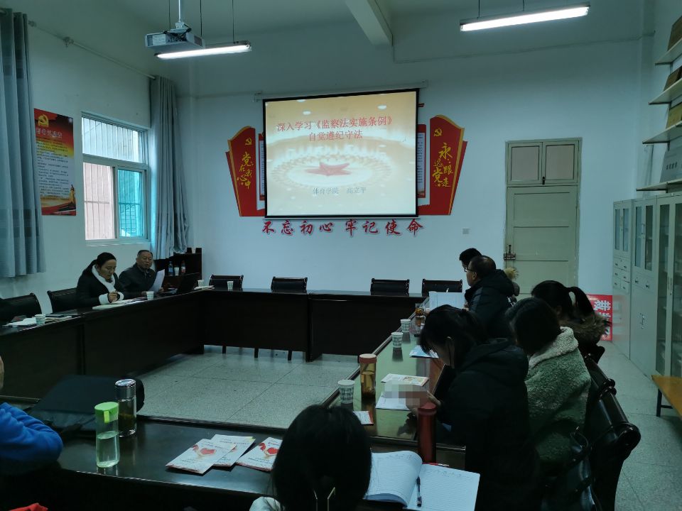 为深入贯彻习近平法治思想,落实宪法和监察法的精神。根据学校统一要求,12月8日下午,Beat365官方网站在体育馆一楼会议室开展监察法实施条例专题学习活动,Beat365官方网站全体教职工参加了学习。主讲人:Beat365官方网站党总支书记高立平。