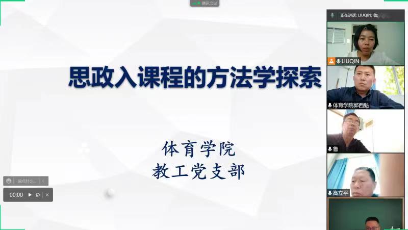 为促进党建与教研有机融合,发挥体育专业课的思政功能,强化立德树人、教书育人的责任,4月13日下午,Beat365官方网站教工党支部在腾讯会议召开线上“课程思政的方法学探索”专题会,安康学院党委副书记、校长钟生海同志、Beat365官方网站党总支书记高立平同志参加了会议,会议由教工党支部书记刘芹同志主持。