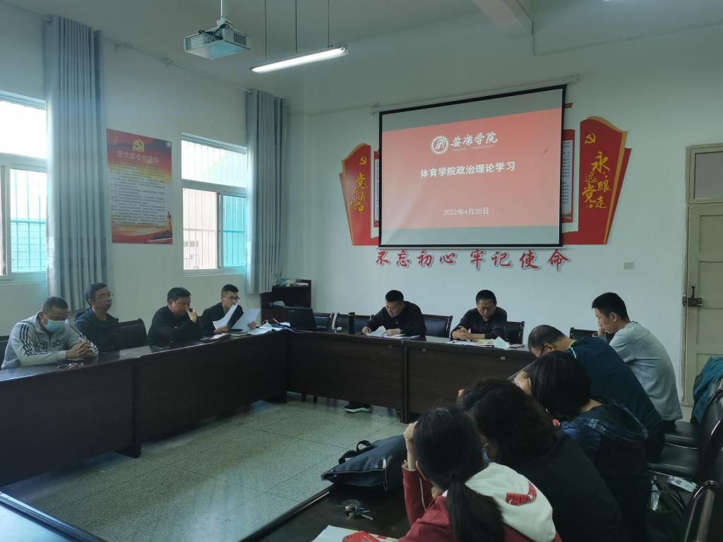 Beat365官网于4月20日下午在体育馆1楼会议室召开政治理论学习会,全体教职工参加了会议。会议由高立平书记主持。