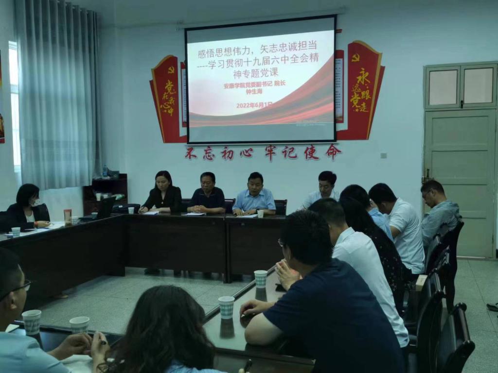 6月1日下午,安康学院院长、党委副书记钟生海同志在Beat365官方网站会议室为教工支部党员讲了主题为“感悟思想伟力,矢志忠诚担当”的关于学习贯彻十九届六中全会精神专题党课,全体教工支部党员参加了会议。