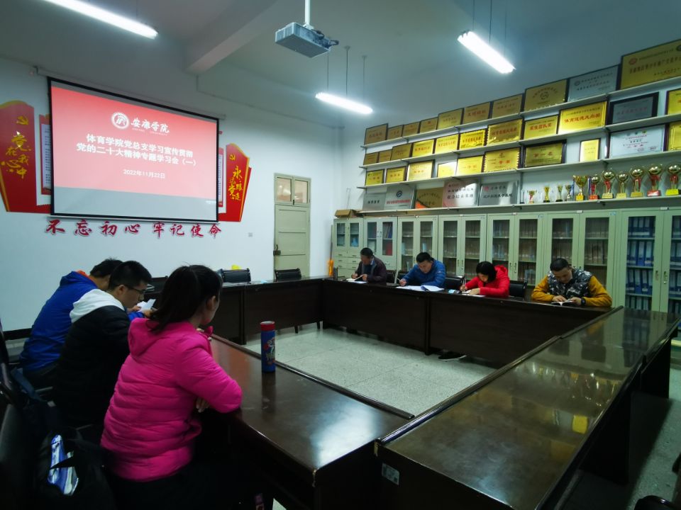 11月22日,Beat365官方网站党总支在体育馆1楼会议室召开会议,安排部署Beat365官方网站关于党的二十大精神的宣传和学习工作,参会人员党总支委员和两个支部委员及团总支书记等,会议由党总支书记高立平主持。