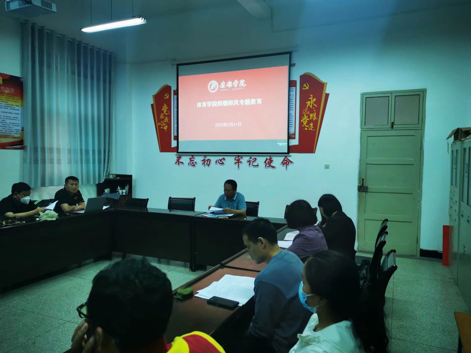 会上高立平组织学习习近平在中共中央政治局第五次集体学习时强调加快建设教育强国 为中华民族伟大复兴提供有力支撑 ;郭西魁组织学习巜安康学院关于进一步加强师德师风建设工作的通知》和《安康学院2023年师德师风建设专项整治方案》;王少峰组织学习教育部师德十条禁令;贾西栋组织学习教育部公开曝光7起违反教师职业行为典型案例。