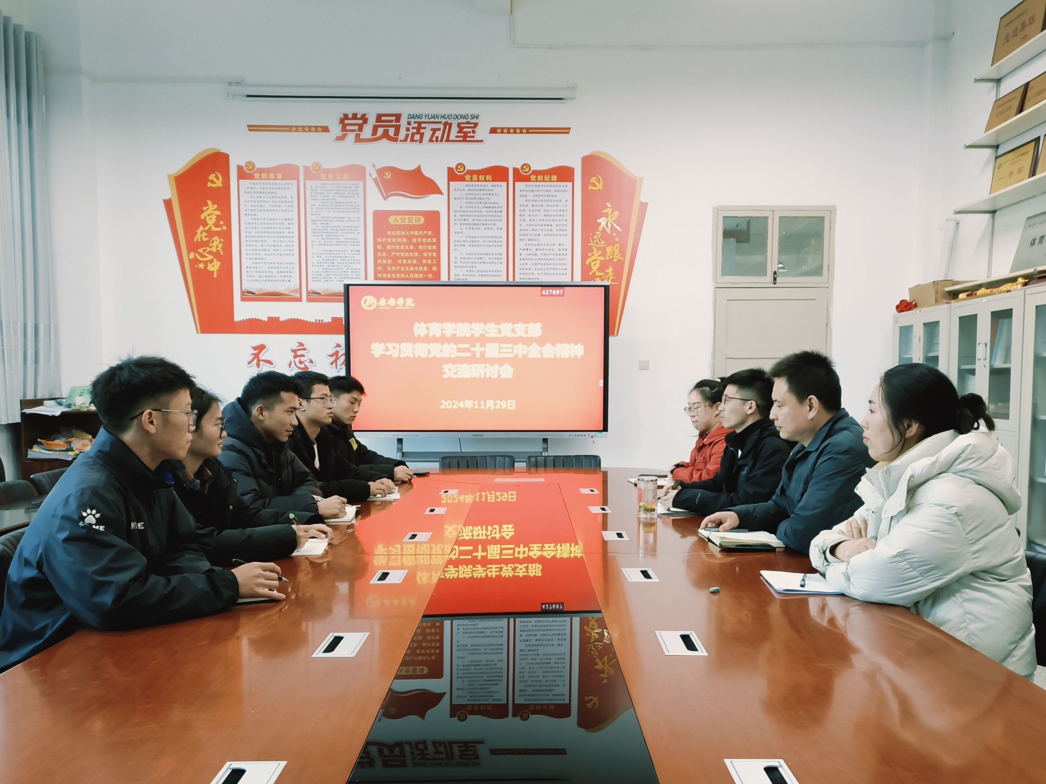 讨论环节,党员们围绕全会精神,结合学院实际,就加强学生思想政治教育、促进校园体育文化建设等问题各抒己见,提出如加强体育课程思政建设、组织丰富体育活动等诸多建设性意见。