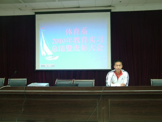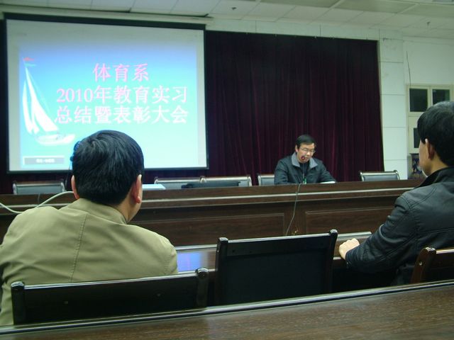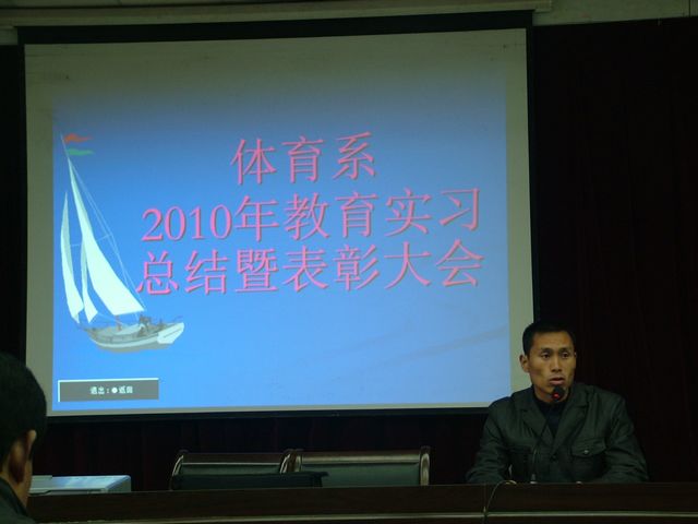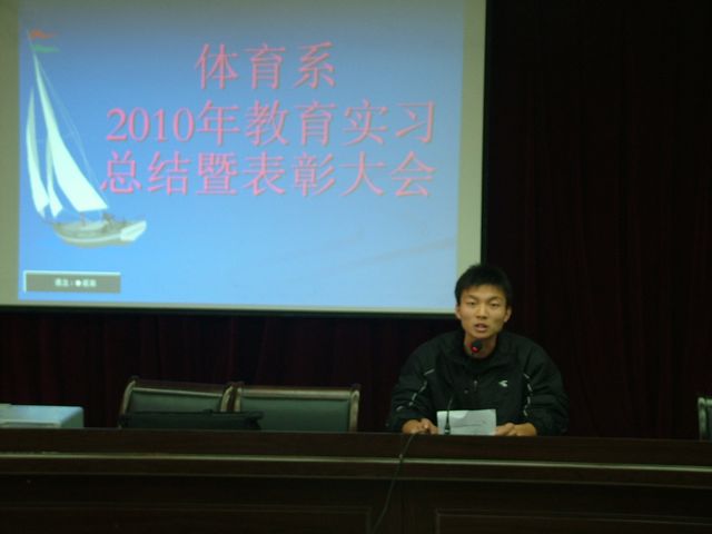 Beat365官网为期6周的2010年教育实习工作于11月18日顺利结束,为了了解基层中小学体育教学现状,反馈我系体育教育专业教学的实践信息,进一步改进教师的教学方法和学生的学习方法,体育系于11月26日下午4:30在图书馆六楼报告厅举行了首届教育实习总结暨表彰大会,系领导、办公室主任、教研室主任和体育系全体学生参加了大会。会议由体育系副主任鲁宗成主持。
