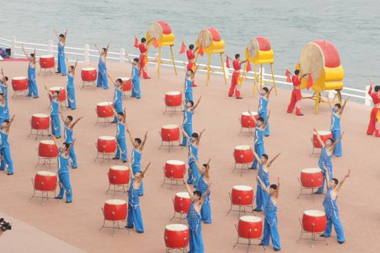 上午9时,六声洪亮的钟声过后,由我系73名学生演出的《钟鼓齐鸣贺端阳》拉开了本次演出的序幕。