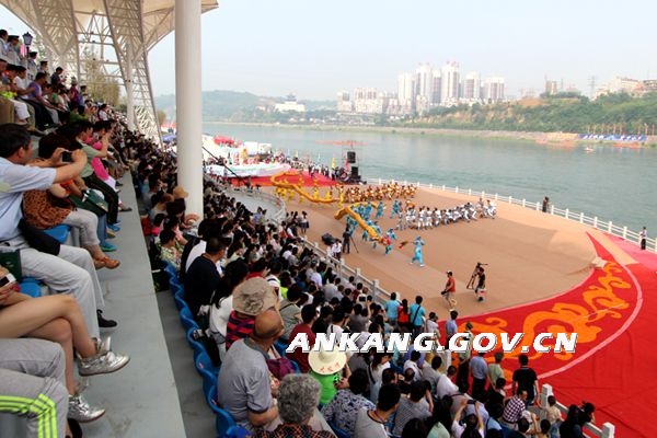 “秦巴明珠、生态安康”。6月2日正值甲午年端午节,第十四届安康汉江龙舟节在汉水江畔安康龙舟园开幕。我系2012、2013级共112名男生承担了开幕式三项表演任务。