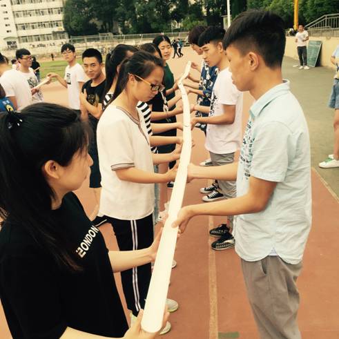 本次运动会在项目设计上征求从事拓展训练教学专任教师,以及长期从事学生心理健康教育咨询工作的相关人员,既体现了拓展训练的竞争性,还参照学生基础体质差异,增强了广泛的可参与性。在注重对学生“团结、协作、竞争”意识培养同时,又在游戏中不断地通过“协作和竞争”调整着各队之间、队员之间关系变化。整个竞赛气氛激烈又不失轻松愉快,参赛同学们尽力完成每一个项目,全身心地投入在比赛中,围观同学不时发出欢声笑语,充分感受到了拓展训练的魅力。