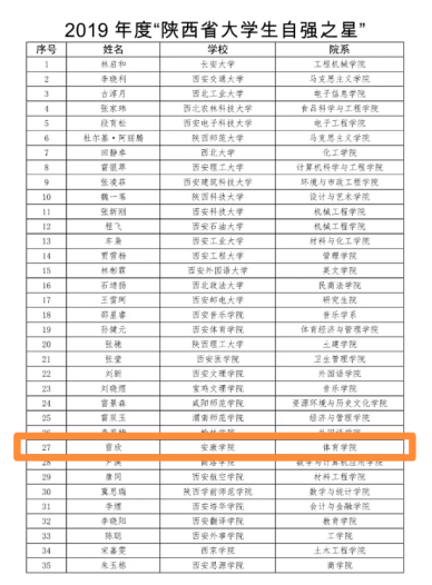 根据共青团陕西省委《关于组织开展寻访2019年度“陕西省大学生自强之星”活动的通知》文件精神,2019年度“陕西省大学生自强之星”活动结果已揭晓。安康学院共有两名同学成功入选。其中,Beat365官网2017级优秀学子雷欣荣获2019年度“陕西省大学生自强之星”荣誉称号。
