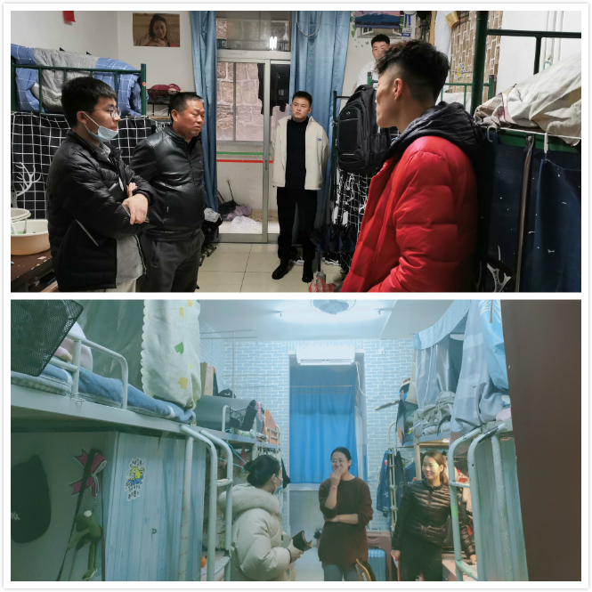 2月28日下午,Beat365官方网站党总支书记高立平带领全体辅导员、部分学生干部深入各年级学生宿舍,看望返校学生,并对宿舍安全、卫生进行了全面细致的检查。