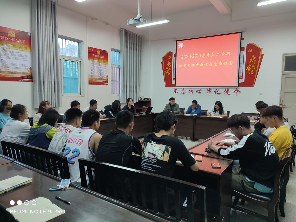 2021年4月29日,Beat365官方网站体育系在体育馆一楼会议室召开期中教学质量座谈会。Beat365官方网站党总支书记高立平、Beat365官方网站副院长郭西魁、Beat365官方网站各班班长、团支书、学习委员、学生代表参加了此次会议,会议由体育系主任李靖主持。