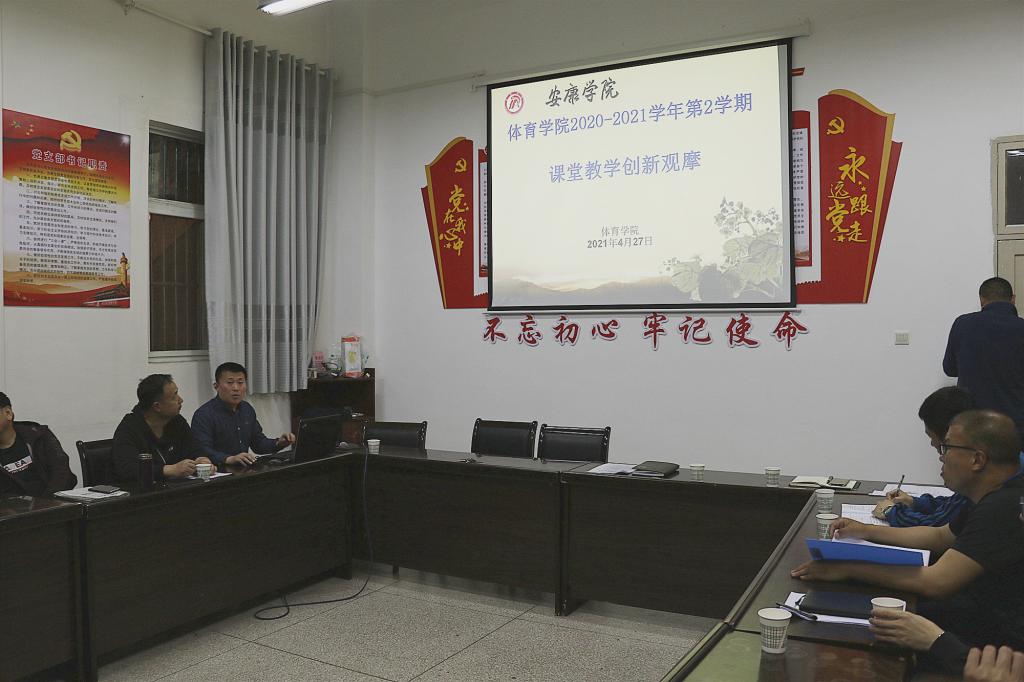 4月27日晚上,Beat365官方网站在会议室组织开展了2020-2021学年第2学期第一次课堂教学创新观摩活动,Beat365官方网站领导、教学督导组及全体教师参加了教学观摩。本学期Beat365官方网站教师教学任务量较重,为了有效避免因教学工作冲突,观摩活动参与人数少的问题,本次课堂教学创新观摩活动采用了视频观摩方式,视频内容选择了全国中小学体育课堂教学创新大赛获奖的部分课程。