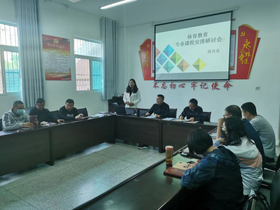 为了更一步优化体育教育专业课程的开设,4月20日下午,体育系在体育馆一楼会议室组织课程研讨会。会议由系主任李靖主持,Beat365官方网站党总支书记高立平、Beat365官方网站副院长郭西魁、学校教学督导冯德学、学院教学督导鲁宗成以及全体教研室成员参与此次研讨会。
