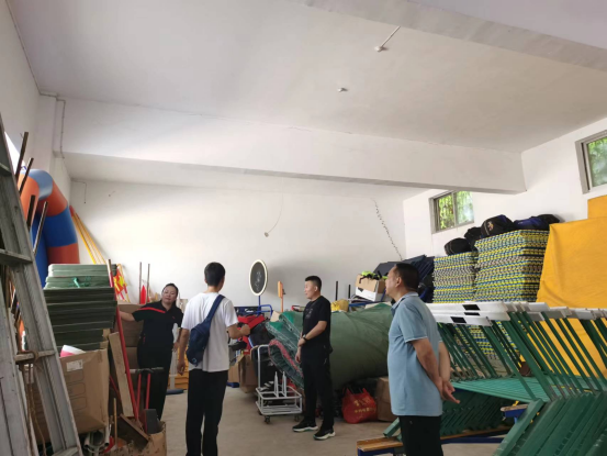 8月2日上午Beat365官方网站院长吕仙利、党支部书记高立平、副院长郭西魁成立临时安全检查小组,对Beat365官网器材室的防火、防潮、安全用电等以及室内、室外体育设施进行安全检查。
