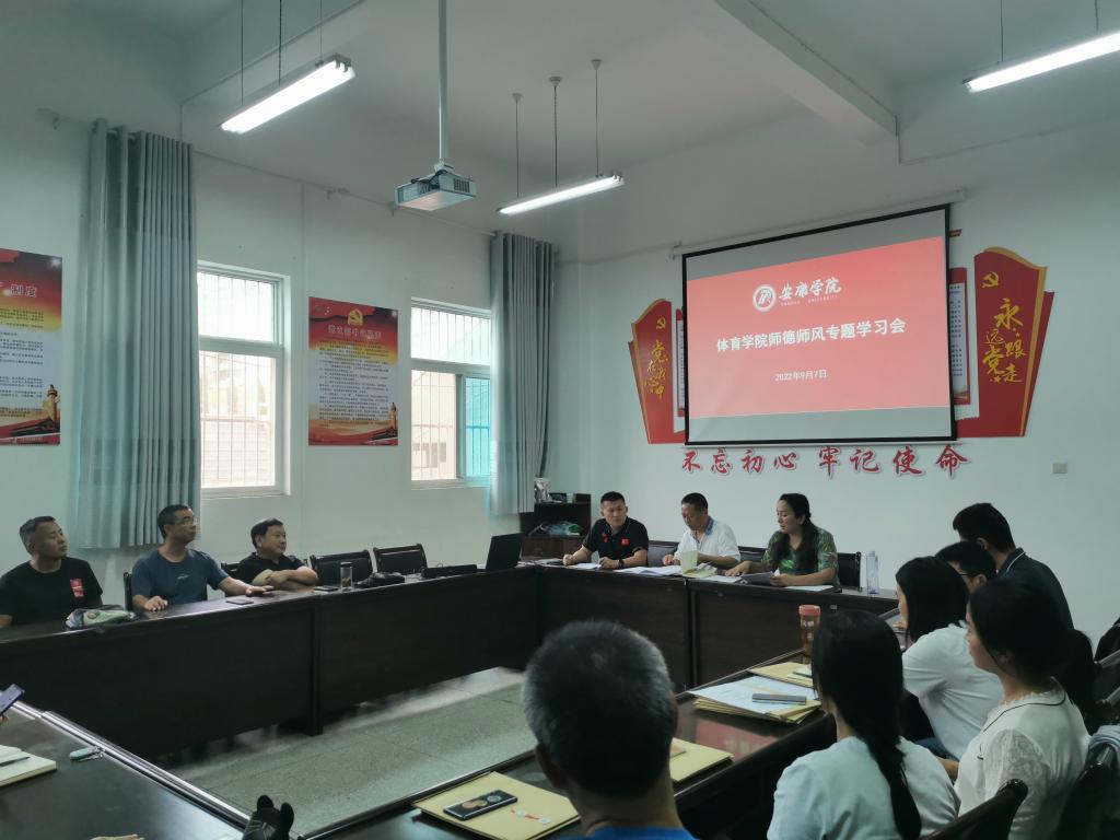 9月7日,Beat365官方网站在体育馆会议室召开师德师风教育专题会议。Beat365官方网站全体教师参加会议。会议由党总支书记高立平主持。