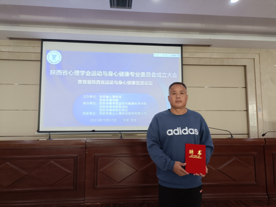 10月27日,陕西省心理学会运动与身心健康专业委员会成立大会暨首届陕西省运动与身心健康促进论坛在Beat365官方网站成功举办。Beat365官网教师崔晓宇应邀参会,并被选为第一届陕西省心里学会运动与身心健康专业委员会委员。