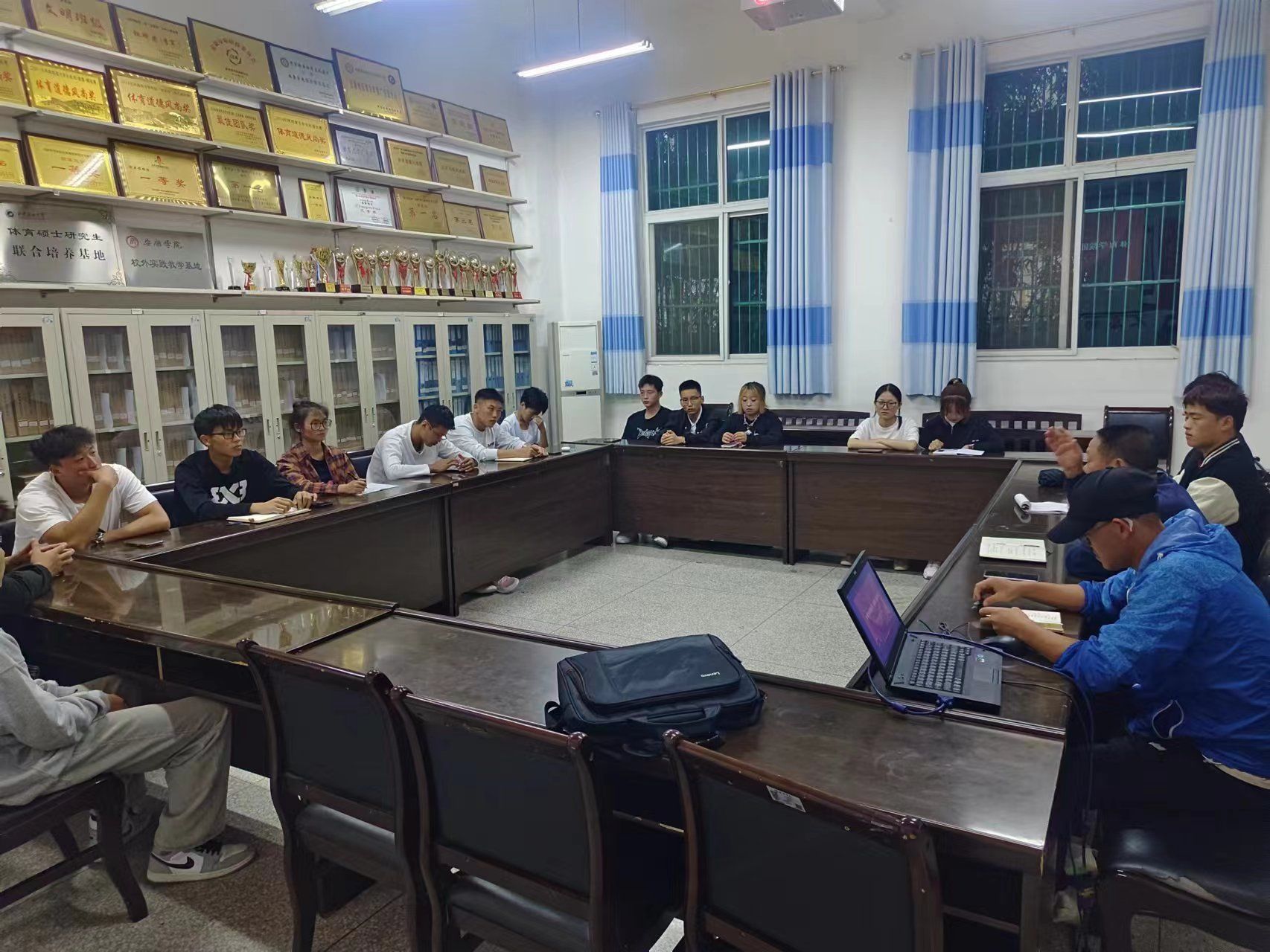 为了进一步提升体育教育专业学生法律意识,激发学生爱国情怀,10月26日,Beat365官网在体育馆一楼会议室召开“爱国是法律责任”主题学习会议。Beat365官网党总支书记高立平、团总支书记刘姚成及各班级团支部成员参加了学习,会议由高立平主持。