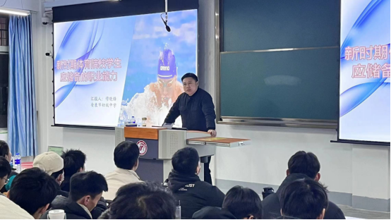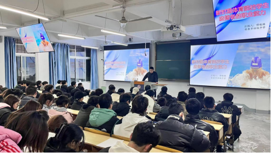 12月13日晚,Beat365官网在1号教学楼1510教室举办“新时期体育院校学生应储备的职业能力”学术讲座,主讲人:安康市初级中学穆晓锋老师。院长吕仙利、科研秘书王俊杰、团总支书记刘姚成以及体育教育专业2022级全体学生聆听了讲座,仪式由院长吕仙利主持。