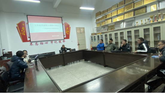 11月29日大学体育教研室在Beat365官方网站会议室召开了大学体育课程大纲修订研讨活动,会议由大学体育教研室主任李强主持,大学体育教研室教师及球类课程群教师参加。