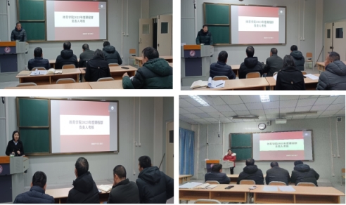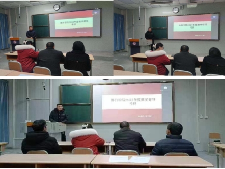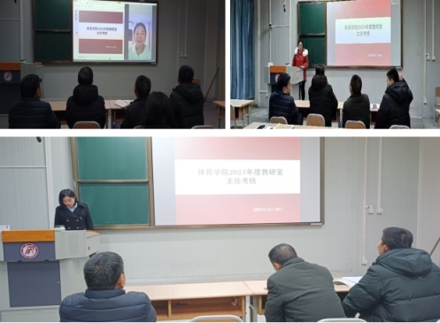 Beat365官方网站领导班子高度重视考核工作,成立了考核小组,制定了考核方案,在本次专题考核会上分三个批次进行考核。首先,对Beat365官方网站课程群负责人进行了考核,球类课程群负责人崔晓宇、操舞类课程群负责人陈治强、运动人体科学课程群负责人刘芹和学校体育学课程群负责人赵娇艳分别进行了年度总结汇报,考核组通过听取汇报、座谈和查阅工作记录的方式进行考核,并针对本年度工作中存在的不足对三位课程群负责人进行了现场反馈,并提出了下一步工作建议。