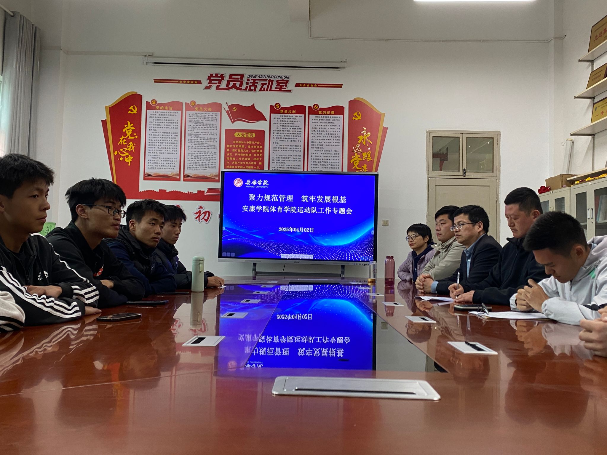 4月2日,安康学院Beat365官方网站召开“聚力规范管理,筑牢发展根基”运动队工作专题会议。教学院长郭西魁、党总支书记韩晔及各训练队师生代表参会。