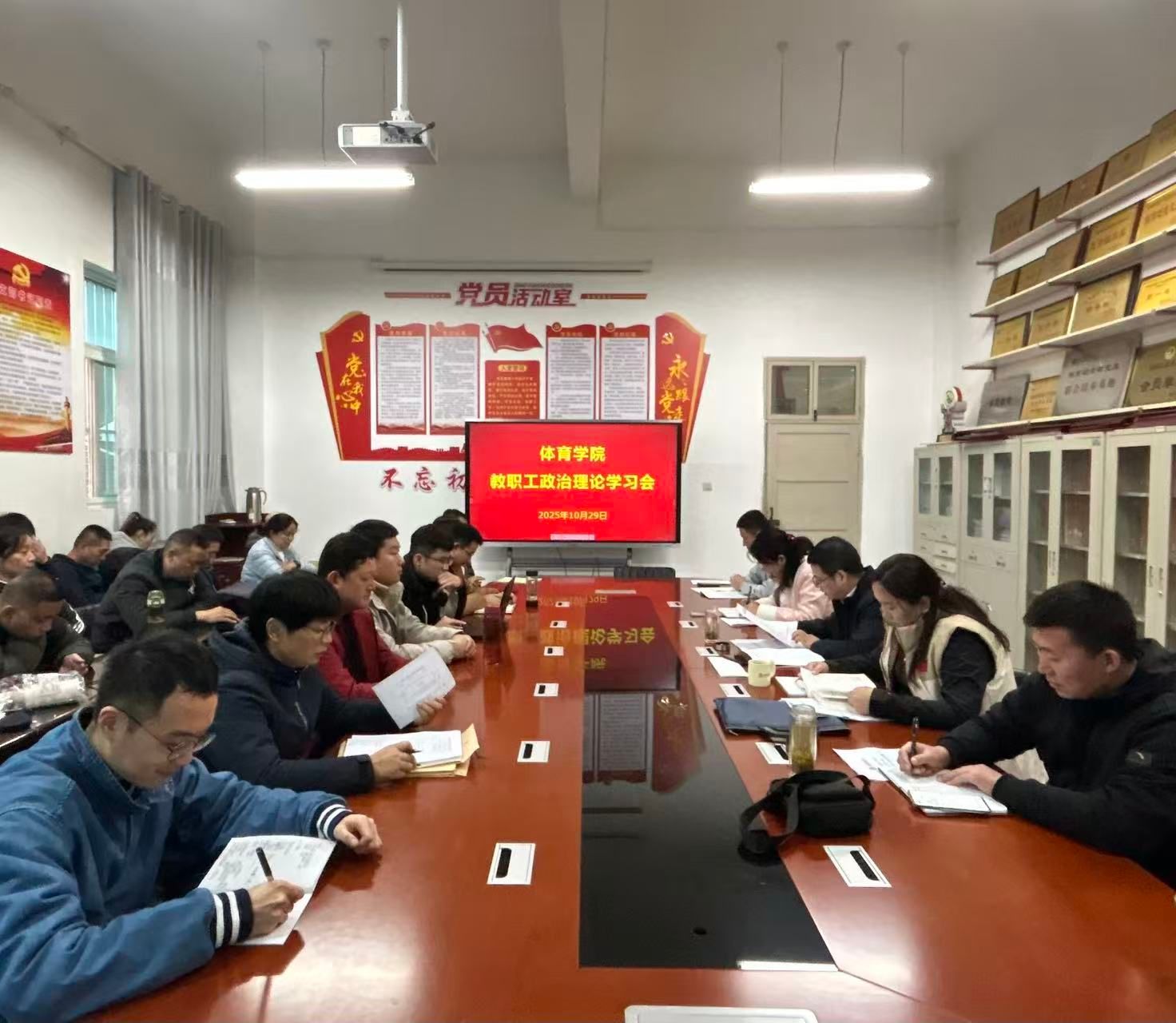 在交流讨论环节,与会教职工围绕“坚守教育初心、提升育人本领”主题,结合体育教学、训练、科研及学生管理工作实际分享学习体会。院长吕仙利表示,要以特岗教师为榜样,扎根体育教育一线,将立德树人根本任务融入课堂教学,在传授运动技能的同时注重学生品德培养;副院长郭西魁提出,要不断提升自身专业素养,优化训练方法,用心指导学生提升竞技水平,助力学生实现体育梦想;党政办主任陈欢则表示,要强化服务意识,为教师教学科研和学生成长成才提供更优质的保障。大家一致认为,要将回信精神转化为工作动力,以实际行动践行人民教师的责任与担当。