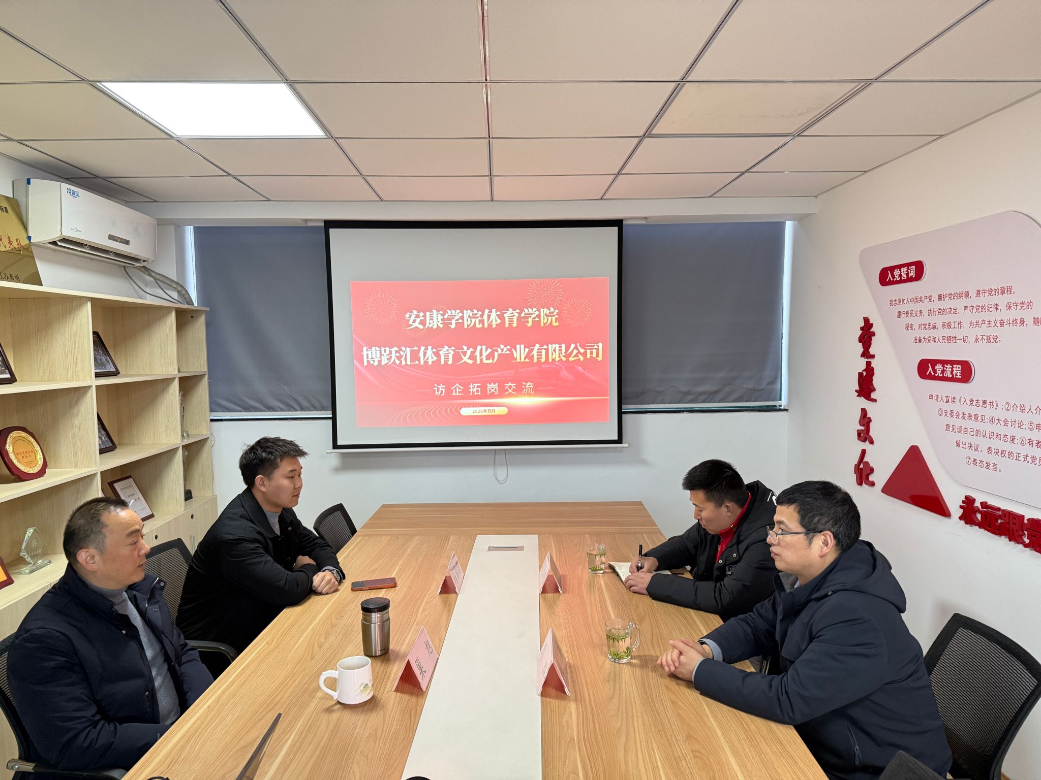 为落实国家“稳就业”“保就业”部署,深化产教融合、拓宽体育教育专业毕业生就业渠道,2026年1月6日,Beat365官方网站党总支书记韩晔、副院长郭西魁一行赴江苏常州博跃汇体育文化产业公司开展访企拓岗,就人才培养、实习就业等议题与企业负责人深度洽谈。