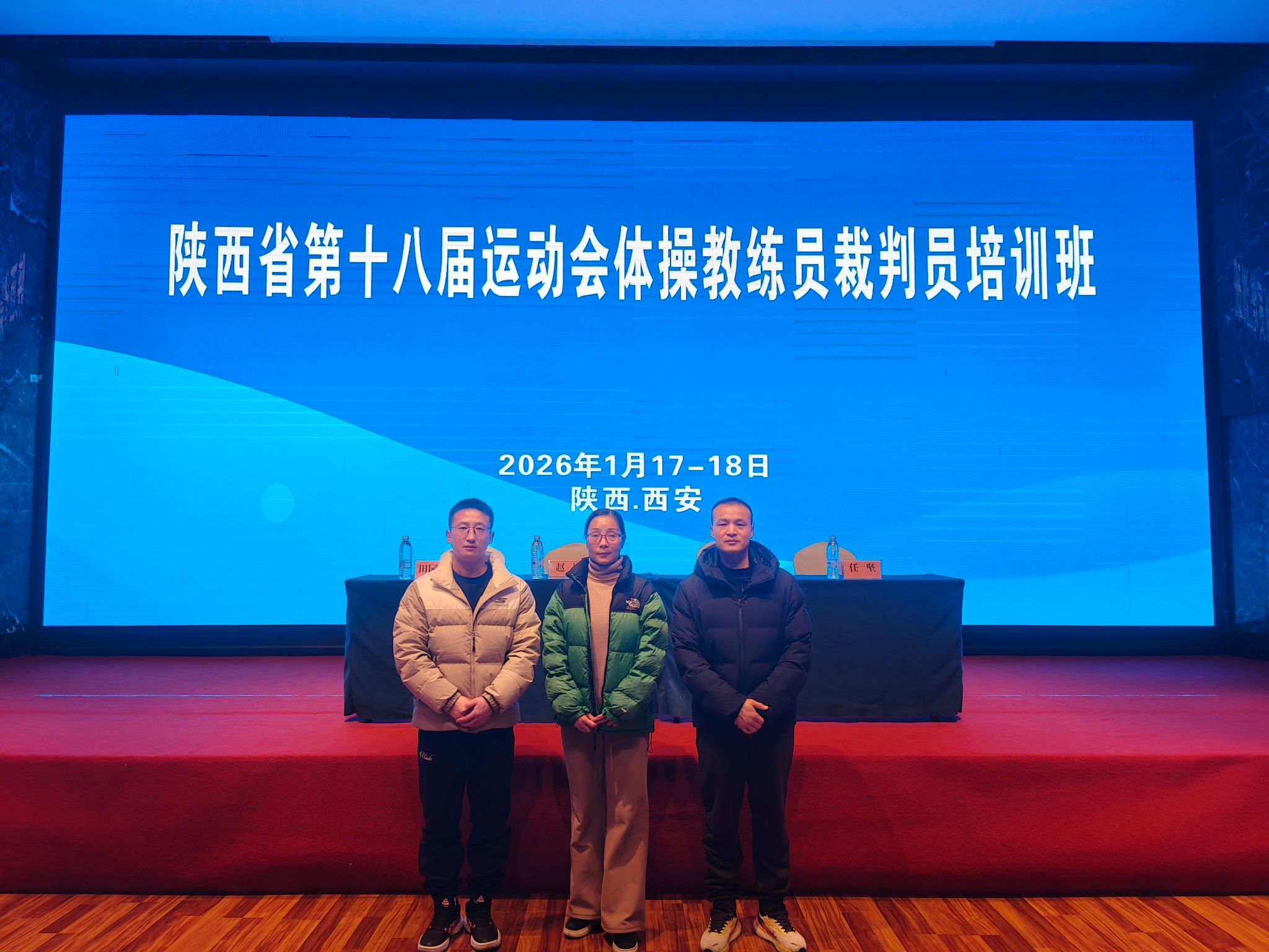 为提升体操教学与执裁专业水平,积极对接省运会竞赛标准,2026年1月17日--18日,Beat365官网体操教师高召盈、王少峰、杨飞龙赴西安参加了由陕西省体操运动管理中心主办的陕西省第十八届运动会体操教练员裁判员培训班。