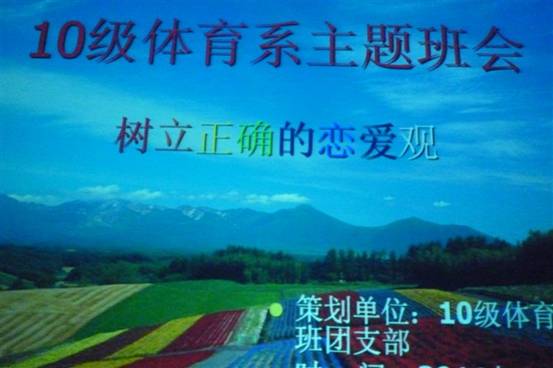 1120晚,体育系10号教学楼成功举行了“树立正确的恋爱观”的主题班会,辅导员梁鸿老师和体育教育10级全体学生参加了班会