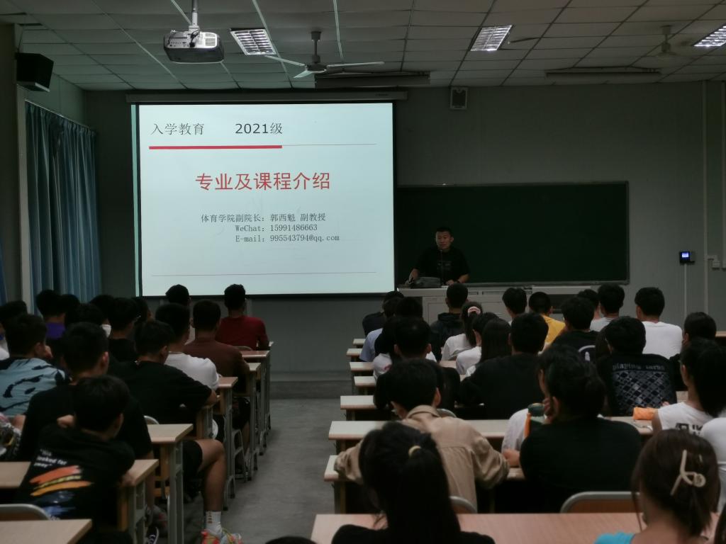 郭西魁副院长结合体育教育专业发展情况及人才培养方案,进行专业认知教育、专业技能达标教育以及行业魅力展示。向新生介绍专业培养目标、课程设置等,使学生对本专业有全面深入的认识。同时,郭西魁副院长结合自身的教学感悟,引导同学们尽快适应大学学习方法与学习模式,学习体育教育专业的课程结构、学分、学时以及毕业要求。引导新生们做好四年学业规划,使同学们顺利完成大学学业。