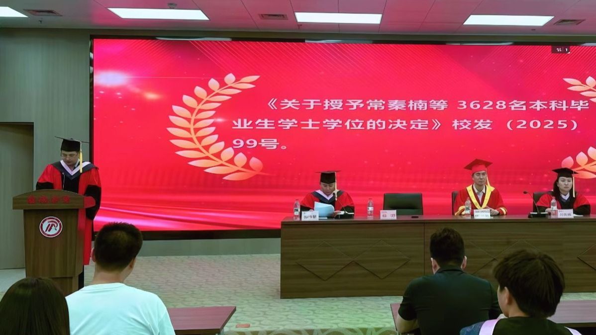 党总支书记韩晔宣读《关于授予2025届本科毕业生学士学位的决定》。