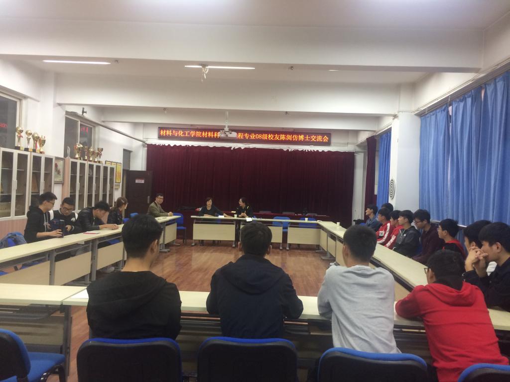 为进一步提高永利官网同学考研积极性和考研成功率,永利官网于11月3日下午在二号实验楼543举行考研交流会,诚邀08级校友陈浏仿博士回母校参加此次会议。材料科学与工程系彭竹琴教授、材料科学与工程系副主任成晓哲老师、15级辅导员乔辉杰博士及永利官网有考研意向学生代表出席了此次交流会。本次交流会由党总支书记杨佩主持。