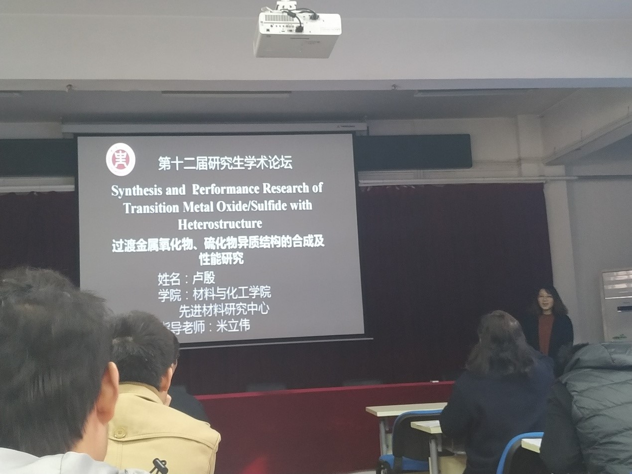 为扩宽研究生学术视野,培养研究生创新意识和能力,永利官网于11月13日(本周二)下午14:00,在2号实验楼543会议室举行了第12届研究生学术论坛材化学院分论坛。本次论坛由席艳君副院长主持,2016和2017级全体研究生报名参加并作ppt汇报。专家评委组由郑州大学陈晓岚教授(组长)、郑州大学郑国强教授、永利官网米立伟院长、席艳君副院长、王志新副主任、刘芳教授、潘玮教授、焦明立副教授组成,研究生指导教师、学院部分教师及全体研究生到场参加。