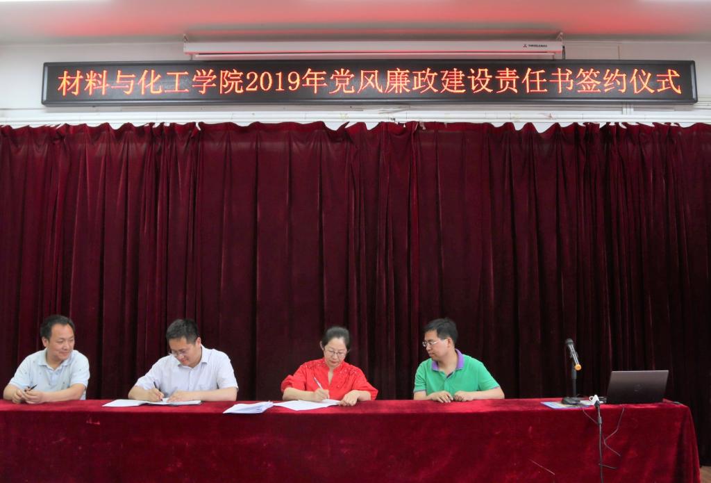按照《永利yl23411官网2019年度党风廉政建设和反腐败工作实施意见》的要求,5月23日下午,材料与化工学院举行2019年党风廉政建设责任书签约仪式。党委书记杨佩、院长米立伟与学院领导班子、各系部(副)主任、各实验中心主任、各党支部书记、两办主任等负责同志逐一签订了《材料与化工学院2019年度党风廉政建设责任书》。责任书中,对分管院领导、责任部门、责任人制定了具体的责任目标及任务分解表。此次签订党风廉政建设责任书旨在进一步明确学院领导班子成员和各部门负责人在党风廉政建设中的责任,把全面从严治党引向深入,扎实推进永利官网2019年党风廉政建设和反腐败工作任务落实。