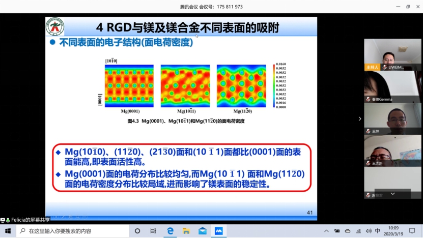 参加此次线上面试的是来自郑州大学材料科学与工程学院材料加工工程专业的应届博士毕业生方哲。在攻读博士期间,方哲以交换生身份于2017年8月到2018年2月赴韩国汉阳大学自然科学学院进行交流学习。方哲博士的研究领域为基于密度泛函理论(DFT)的第一性原理计算方法研究材料的性能。主要包括:生物分子(如官能团、氨基酸、二肽和 RGD 三肽)与生物镁及镁合金表面之间作用的规律及机制;从原子尺度研究生物分子与镁及镁合金表面成键的电子结构性质;合金元素调控生物分子与镁及镁合金表面之间结合能力的机制以及金属机械性能的计算。方哲博士的研究方向是目前永利官网紧缺学科方向。