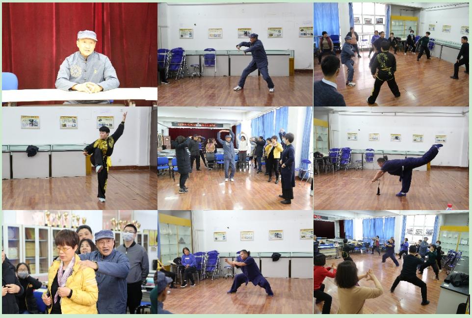随后,七十七岁高龄的刘义明老师亲自现场展演苌家拳的四桩一功,包括十字推手桩、斜行磨盘桩、云手催气桩、阴阳乾坤桩、双凤旋舞功;苌家拳九代传人崔良芳老师现场展演苌家拳的普及推广套路双燕掌和凤之舞;苌家拳九代传人杨俊伟老师现场展演柔练二十四气拳、刚发二十四字功力拳、展演黑虎拳、苌氏乾坤剑法等。几位老师深厚的武术功底,让教工们现场领略了这项老少皆宜的中华武术尤其是河南武术的风采和魅力。