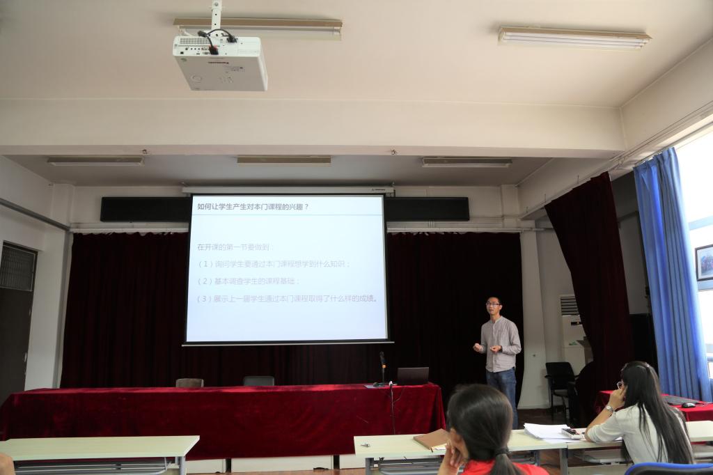 贾少培老师就《混合课堂教学案例》专题首先介绍了当前本科教育中开展“混合课堂”的教育背景和必要性;紧接着介绍了当前进行“混合课堂” 所需要用的工具,如中国大学生慕课(MOOC)、Canvas网络教学平台、微课以及线上私密小课堂等;最后介绍了“混合课堂”教学的设计思路和技巧以及激发学生学习课程兴趣的方法。宋梦老师为大家分享了《微课的制作方法和初步设计》,通过现场实操微课制作介绍了三种微课制作的工具,包括纯PPT录制、个人化拍摄(手机、DV等)和电脑录屏后期剪辑,同时向大家介绍了三种方法的优点和不足。会后两位老师将学习资源和软件工具共享给全院老师以便交流学习。