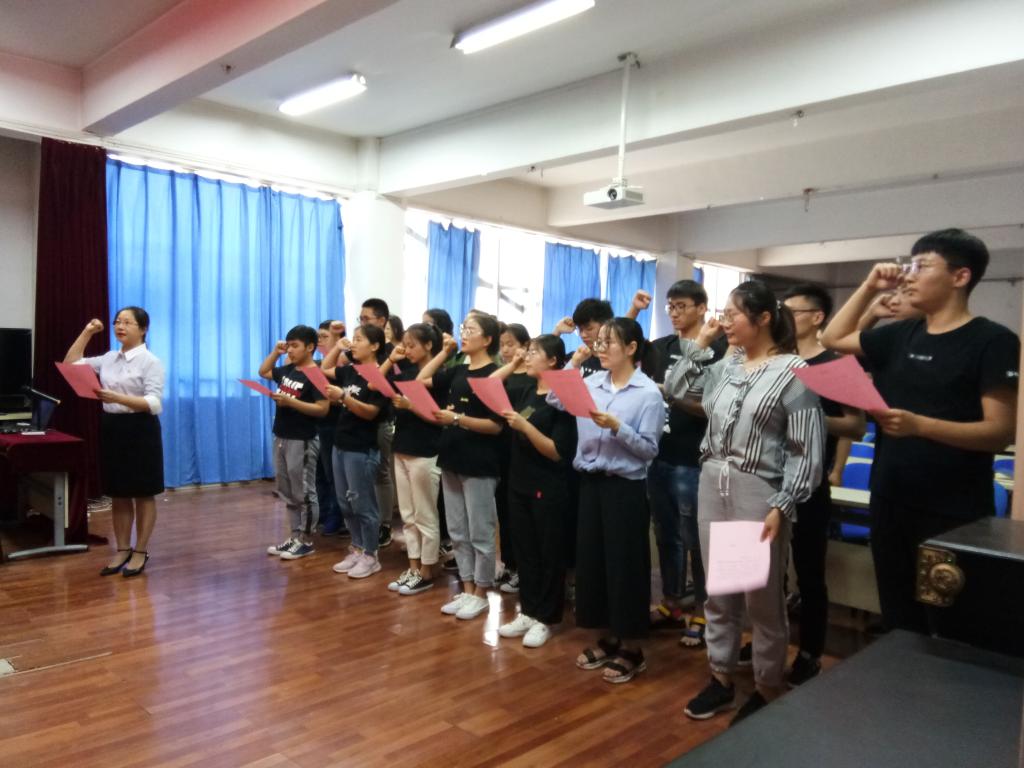 2019年6月3日,材料与化工学院在二号实验楼543举行了庄严而肃穆的新党员入党宣誓活动。会议由材料与化工学院党委书记杨佩主持,各学生党支部书记及全体学生党员参加。