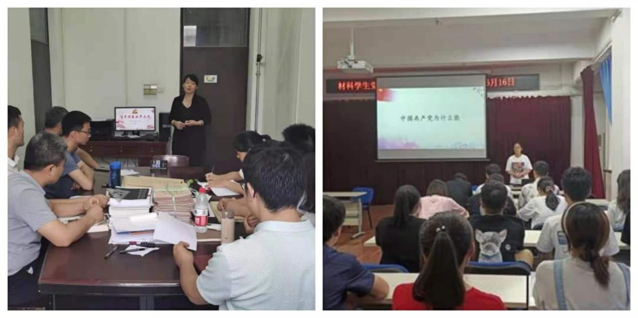 材科专业教工党支部(左)和学生党支部(右)活动照片