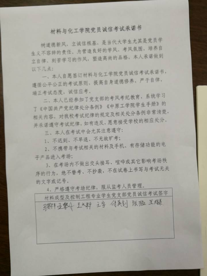 在教育大会上,党支部书记邢军阳要求全体党员、预备党员、入党积极分子要认识看待诚信考试,要在期末考试中发挥好先锋模范作用,当好排头兵、当好宣传队。邢军阳指出,全体党员、预备党员、积极分子要不断提高自己的党性修养,自觉抵制作弊抄袭等不良风气,带头遵守校规校纪,一方面以自己的良好形象影响带动身边同学拒绝舞弊、诚信考试,另一方面协助老师做好诚信考试的宣传教育,让更多人认识到违纪舞弊的危害,认识到诚信考试的重要,并向支部成员一一解读了永利官网对待考试舞弊行为的各种严厉处罚,会后支部全体成员在党员诚信考试承诺书上签了字。