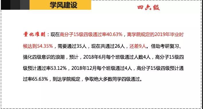 高分子15级班主任老师为班级制定四六级通过计划及量化准则。