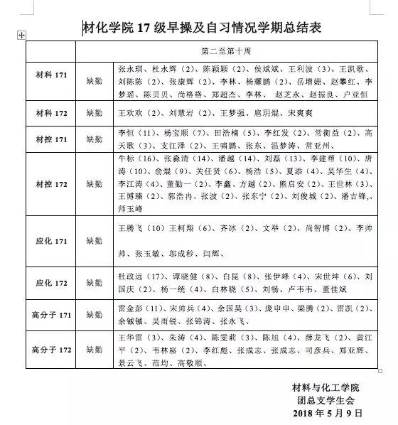通过对早晚自习缺勤情况的了解,具体到每个学生缺勤原因,并对其进行督促。