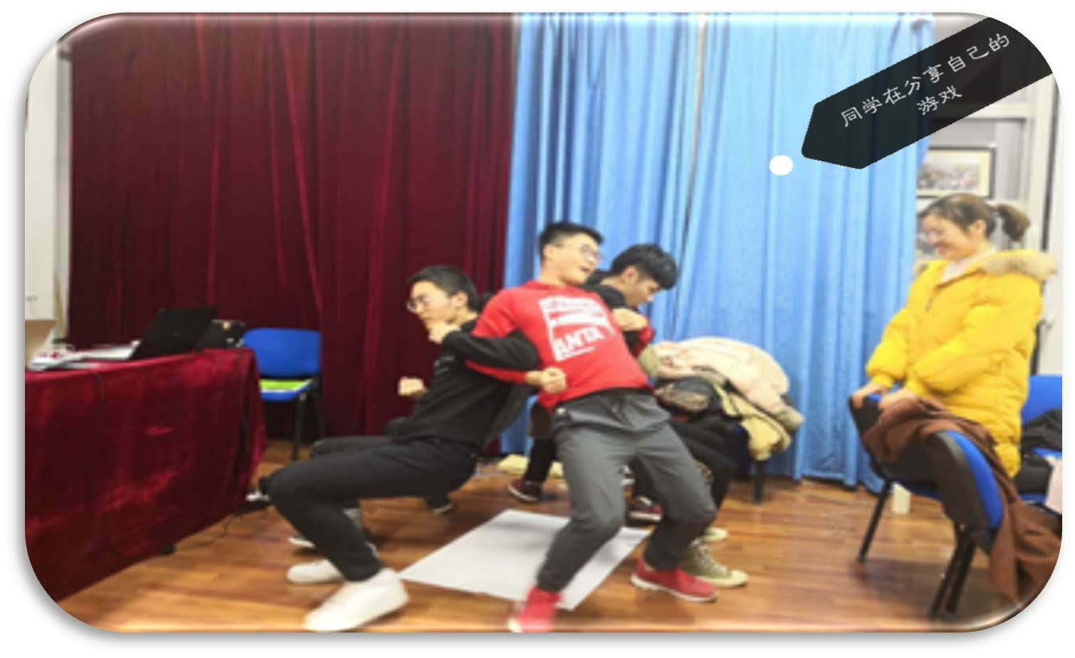 第二天上午采用垫脚石法解决大学生中存在的问题,这种方法使同学们脑洞大开,极大地激发了同学们的创新思维能力。第二天下午及晚上的体验-策划-分享心灵游戏,使同学们体会游戏所传达的心理世界,感受到生活中“导师”和“交流”的重要性;通过策划分享心灵游戏,充分发挥了学生的创新潜能,提高了团队合作能力。