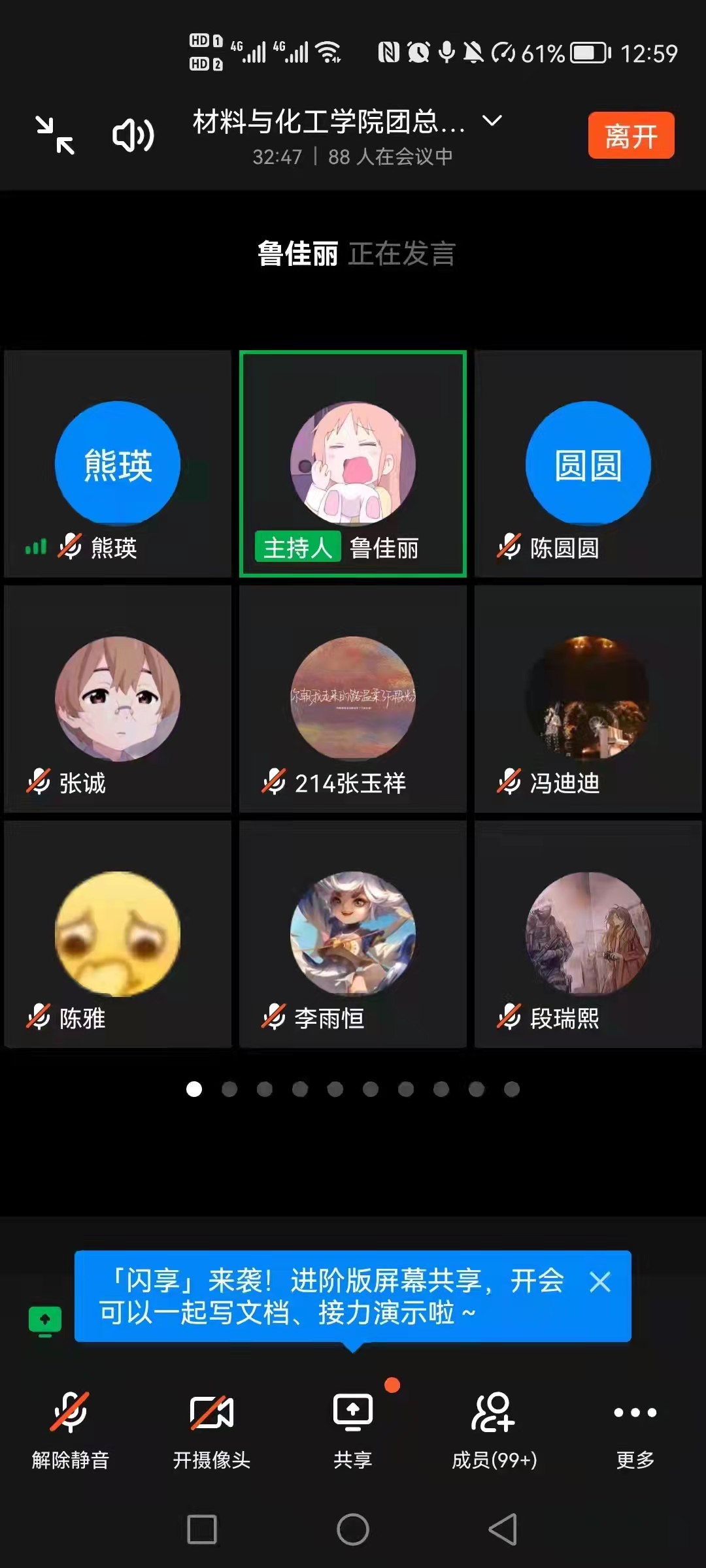 至此,本次换届大会圆满结束。不忘初心,薪火相传。相信每一名学生干部一定会传承好“团结、责任、激情、奉献”的学生会精神,用奋斗亮出青春底色,以实干书写人生华章,锻炼能力,踏实进取,为材化学院的明天更加辉煌,贡献青春与智慧。