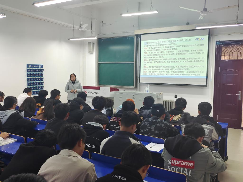在材料成型及控制工程专业教育会上,教研室主任郭建老师为同学们讲述了本专业的办学历史、培养目标、课程体系和师资力量等。重点介绍了材控专业在诸多行业领域中的需求和在实际工程应用中的关键地位,勉励新生要珍惜大学时光,坚定信念、树立目标,扎实学习,努力奋进。