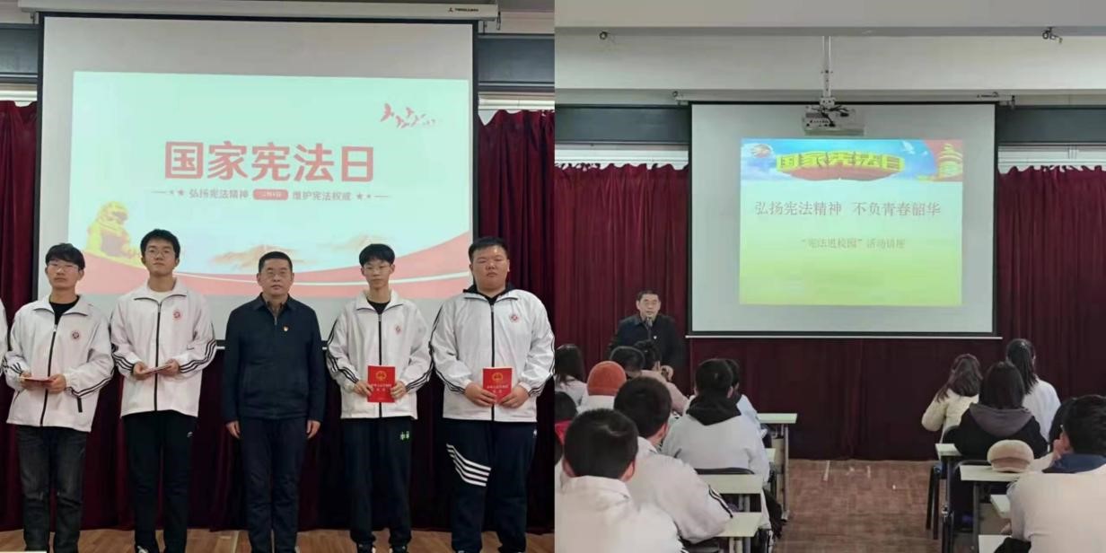 在庄严的国歌声中,李长林书记亲自为21级同学代表颁发宪法宣传手册,作为成人礼物,送上殷殷祝福。会上,李书记作了题为“弘扬宪法精神 不负青春韶华”专题讲座。他对国家宪法日和成人礼的来历、宪法的地位、内容及发展历程进行了深入浅出的讲解。他讲到,青春是人生中最美好的时期,是精力最旺盛的时期,是发挥学习优势的时期,是储备知识、储备能力的时期,希望同学们在享有年满十八周岁公民应履行的义务和拥有的权利的同时,更要练就过硬本领,锤炼品德修为,用奋斗浇灌青春之花,用青春承担时代重任。