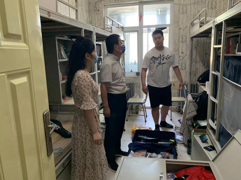 宿舍走访暖人心。通过走访慰问的形式,使同学们直接感受到了学院领导的关爱和材化大家庭的温暖,拉进了师生距离。同时,及时掌握了学生最新动态和返校后面临的现实问题,了解到学生的所思、所想、所需,为本学期学生工作顺利开展奠定了坚实基础。
