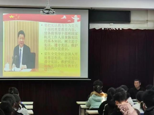 国家宪法日暨成人礼主题活动在雄壮的国歌声中拉开帷幕。李长林以《弘扬宪法精神,不负青春韶华》为题,深入浅出、生动形象地介绍了宪法的历史,宪法的特征和原则,我国的国家制度,公民的权利和义务等。他勉励同学们应知感恩,明责任,勇奋斗,严于律己,主动担当作为,自觉尊法学法守法用法,用奋斗浇灌青春之花,用青春承担时代重任。